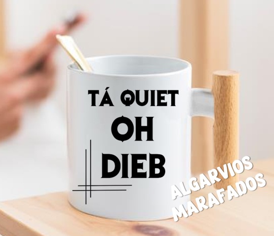 Caneca "TÁ QUIET OH DIEB" 15,00 € Desconto de %. Partilhar Compra este produto e ganha 45 Pontos! Saber mais Personalizar a parte de trás do artigo - 2,00 € Comprar Contactar @ Caneca dos Algarvios Marafados "TÁ QUIET OH DIEB" Caneca de cerâmica com asa em madeira (pega feita em madeira natural) Capacidade: 300ml Tags AlgarveAlgarviosCaneca AlgarveExpressão algarvia