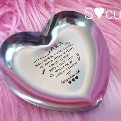 Base porta-joias coração 9,50 € Desconto de %. Partilhar Compra este produto e ganha 28 Pontos! Saber mais Opção Prateado Dourado Personalização pretendida Comprar Contactar Base porta-jóias em formato coração. "Professora/Educadora/Auxiliar... Personalize com a sua mensagem favorita Aço inoxidável, com gravação a laser. Disponível em prateado ou dourado. Pode juntar os brincos coração ao seu pedido. Tags ProfessoraEducadoraAuxiliarFinal ano letivoBase coração