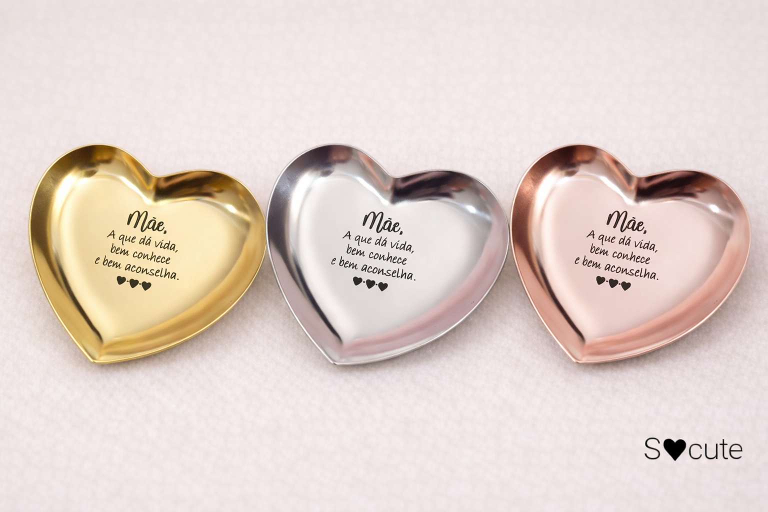 Base Porta Joias Coração para Mãe – Dourado, Prateado ou Rose Gold