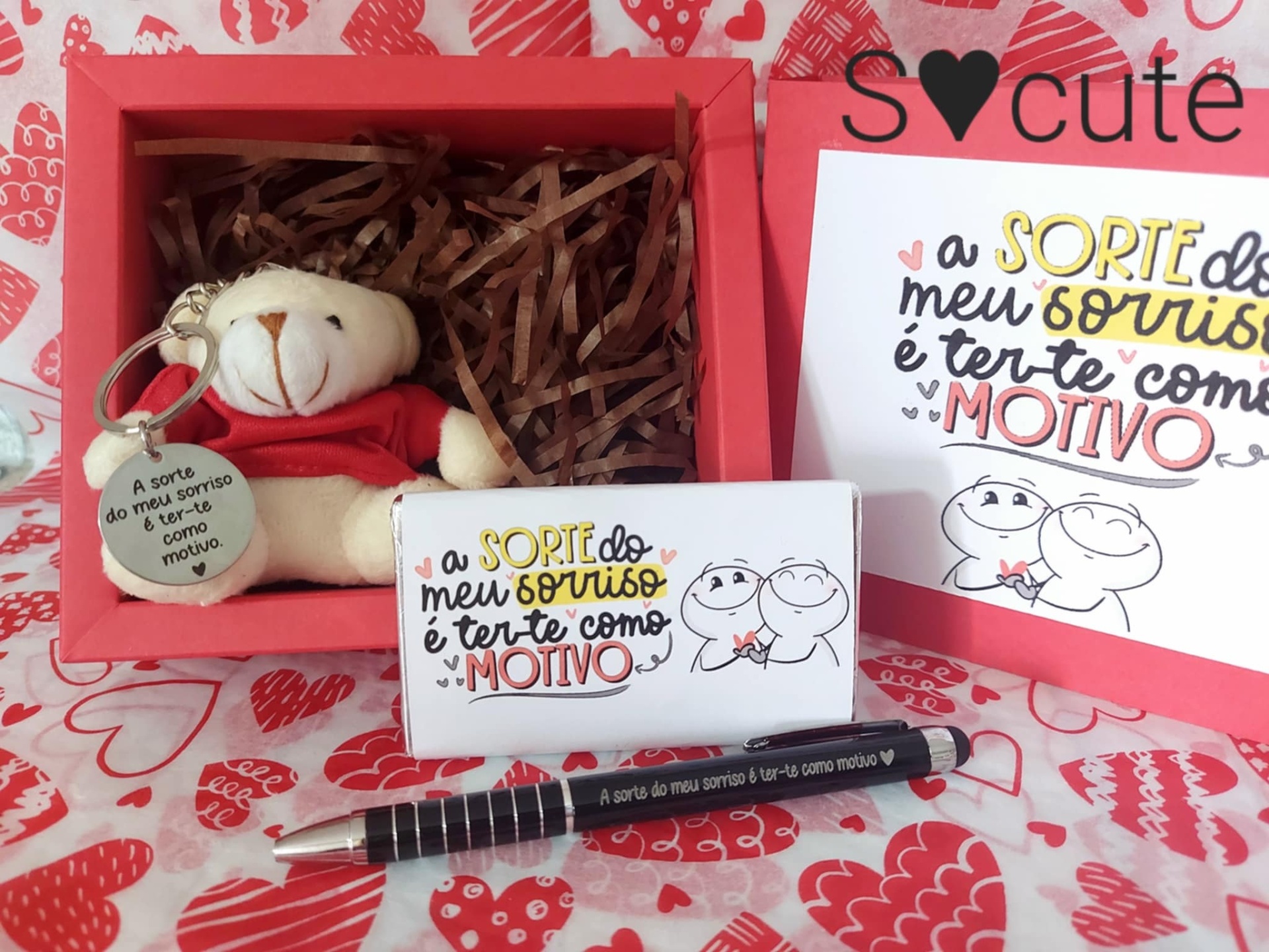 Box Love BL1 "A sorte do meu sorriso é ter-te como motivo" 14,90 € Desconto de %. Partilhar Compra este produto e ganha 44 Pontos! Saber mais Comprar Contactar BOX LOVE com decoração alusiva ao Dia dos Namorados Incluí: - 1 Porta-chaves Ursinho Camisola Vermelha - 1 Caneta preta gravada - 1 Chocolate alusivo ao Dia dos Namorados Tags Box namoradosDia dos Namorados