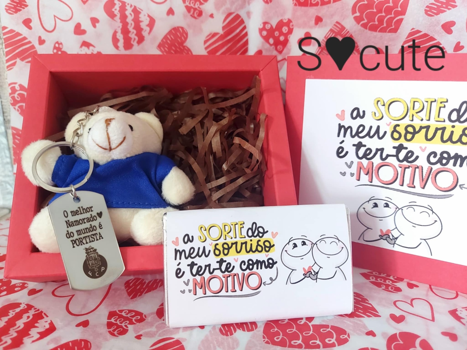 Box Love Clubes BL2 "A sorte do meu sorriso é ter-te como motivo" 12,90 € Desconto de %. Partilhar Compra este produto e ganha 38 Pontos! Saber mais Clube Porto Sporting Benfica Comprar Contactar BOX LOVE CLUBES com decoração alusiva ao Dia dos Namorados Incluí: - 1 Porta-chaves Ursinho Camisola do Clube respetivo (Porto, Sporting, Benfica) Medalha gravada: O melhor namorado do mundo é Portista/Sportinguista/Benfiquista - 1 Chocolate alusivo ao Dia dos Namorados Tags Dia dos NamoradosBox namorados