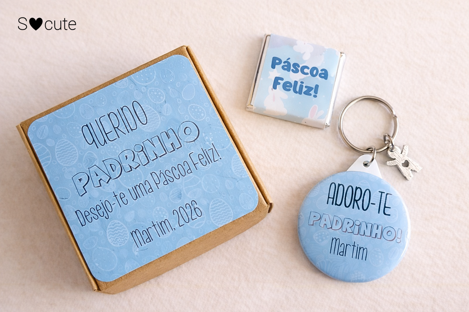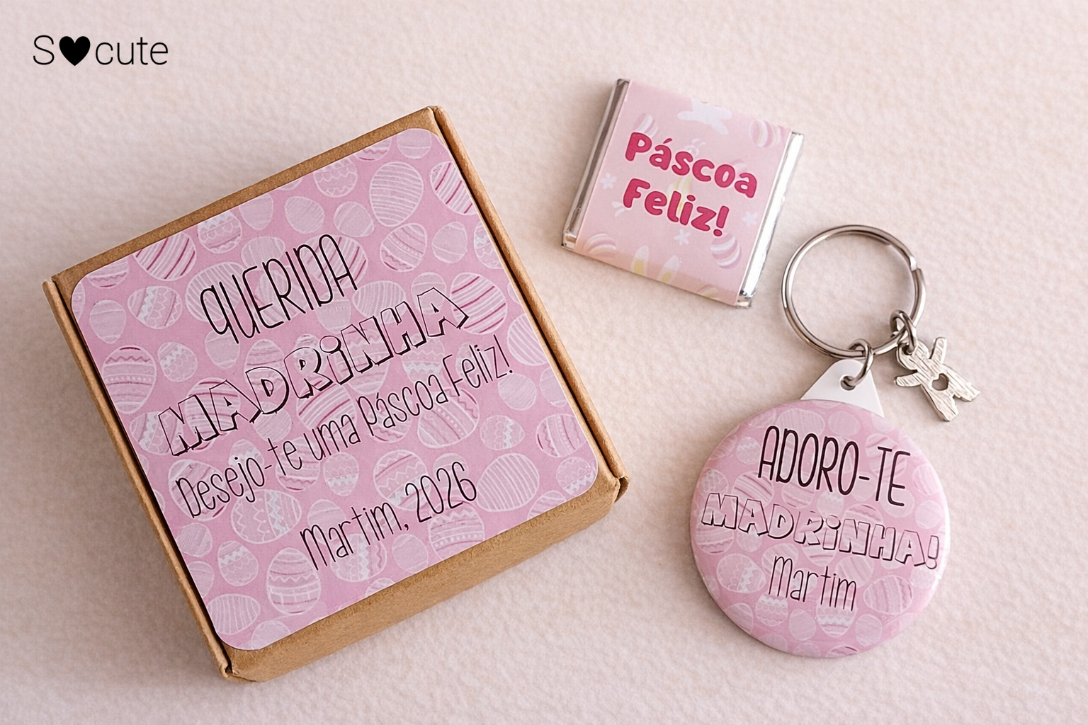 • Lembrança de Páscoa para Padrinhos – Porta-chaves Personalizado com Chocolate