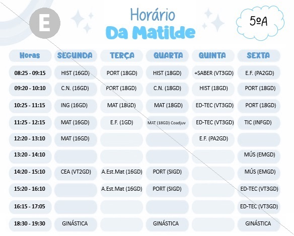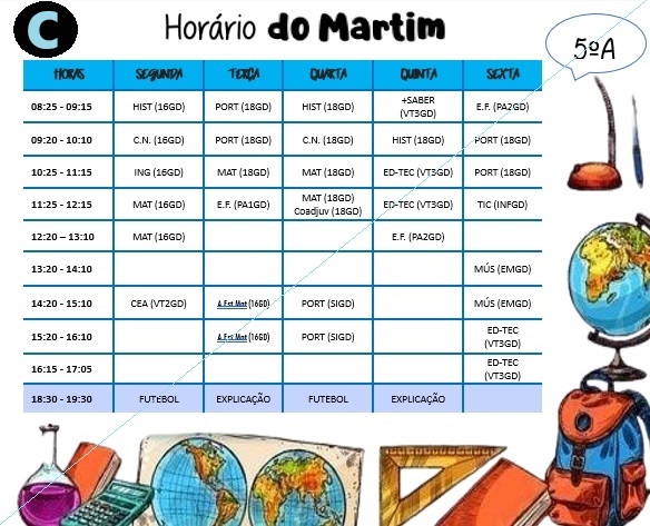 NOTA: Será solicitado por e-mail o envio do horário do aluno
