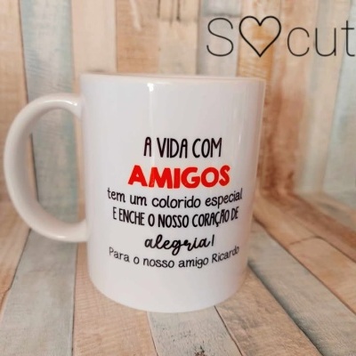 Caneca - A vida com amigos 10,00 € Desconto de %. Partilhar Compra este produto e ganha 30 Pontos! Saber mais Personalização pretendida Personalizar a parte de trás do artigo - 2,00 € Comprar Contactar Caneca personalizada para os melhores amigos! "A vida com AMIGOS tem um colorido especial e enche o nosso coração de alegria!" Personalize! Pode inclusivé conter uma imagem, nome ou data na parte de trás. Capacidade 300ml. Caixinha personalizada incluída. Tags AmizadeCaneca amigosCaneca amigo