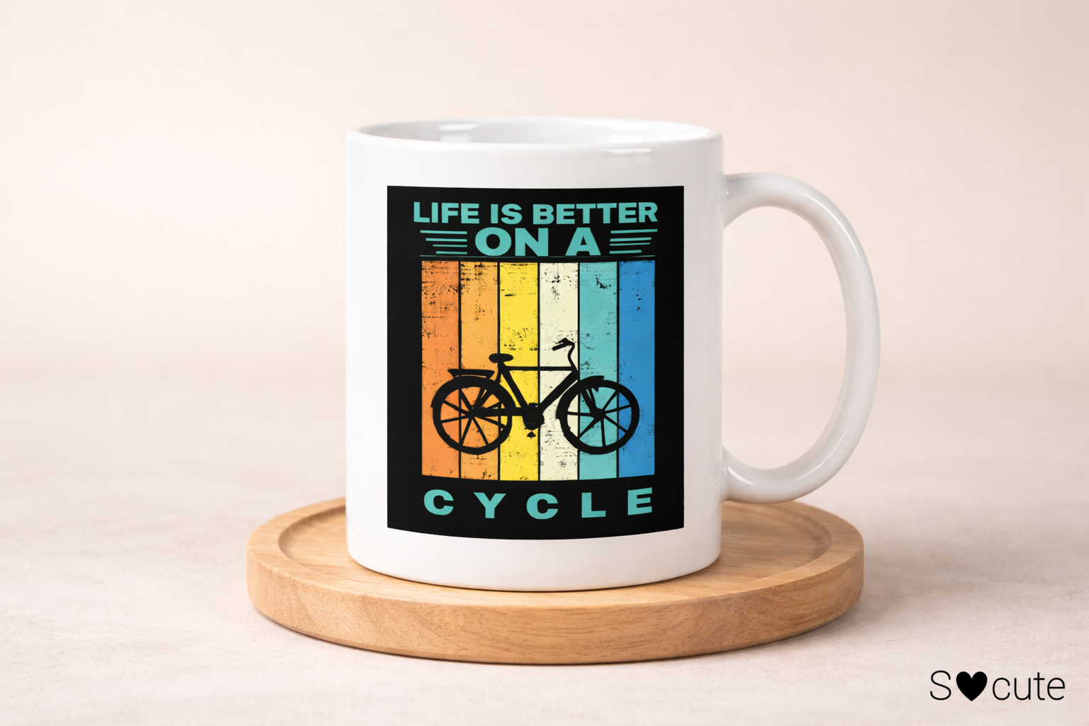 Caneca Bicicleta “Life is Better on a Cycle” – Presente Original para Ciclistas