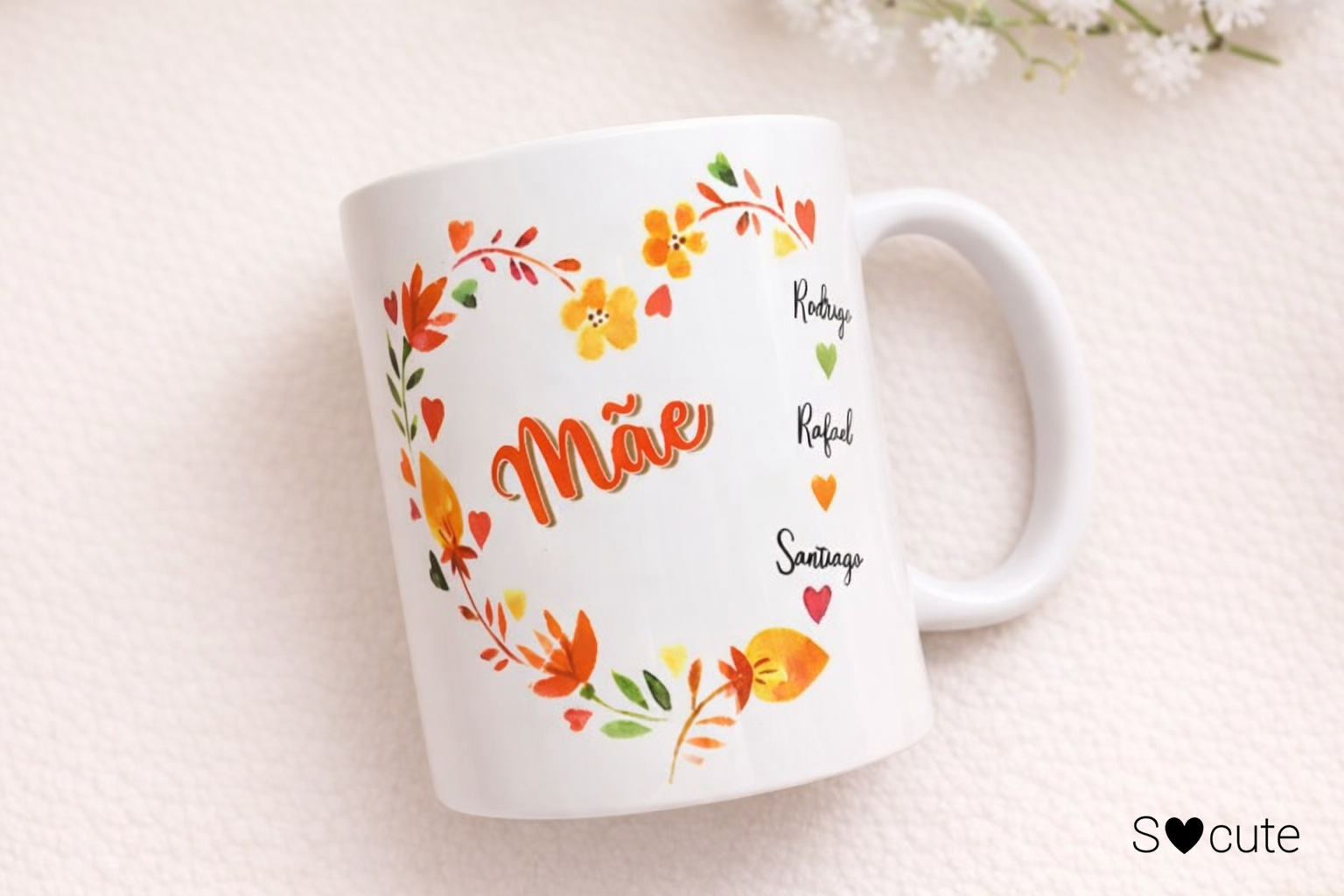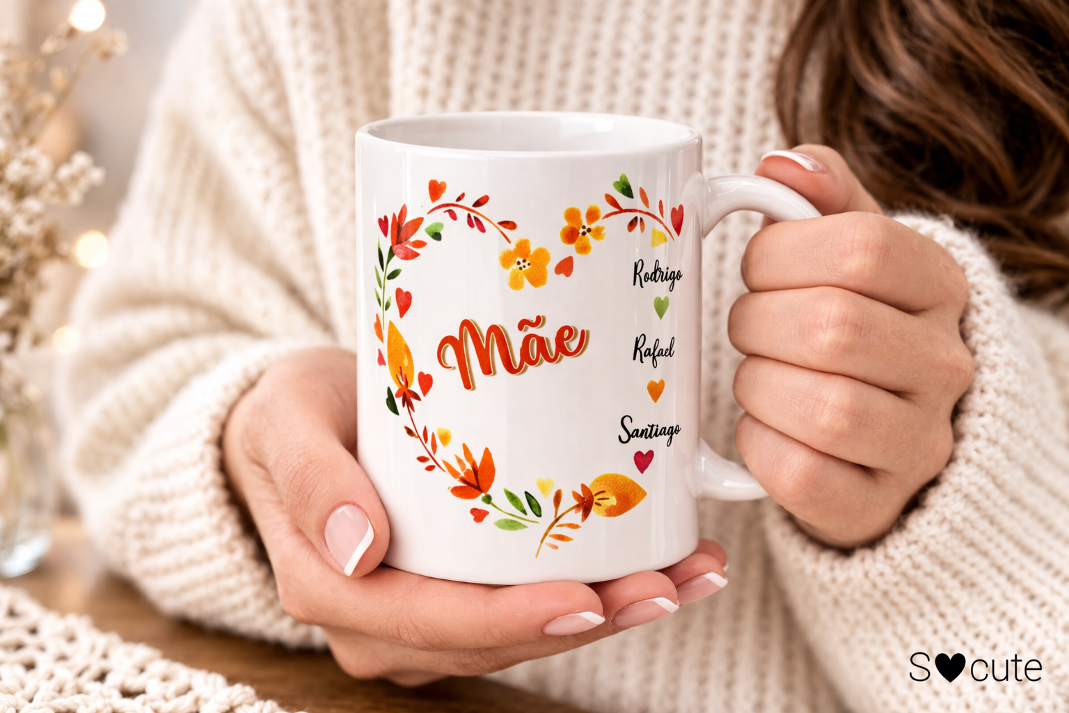 Caneca Personalizada “Mãe” com Nomes dos Filhos – Presente Especial Dia da Mãe