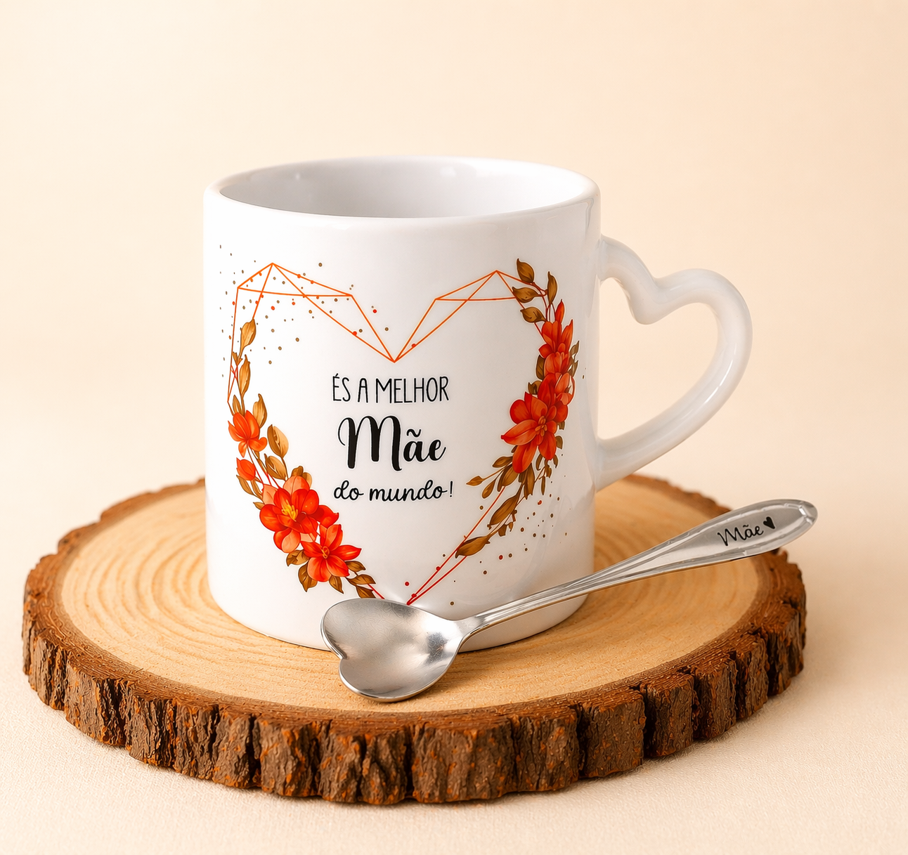 Caneca “És a Melhor Mãe do Mundo” + Colher Gravada