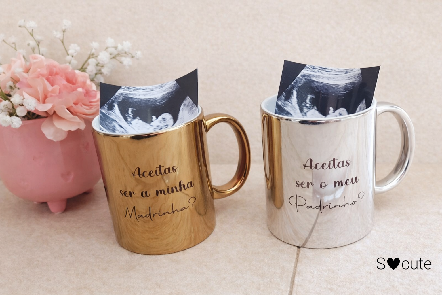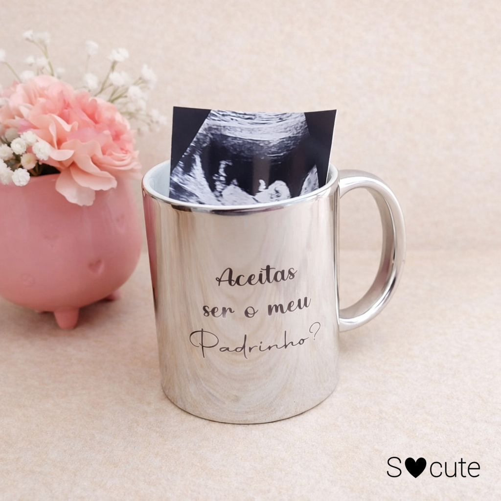 Canecas Convite de Padrinho e Madrinha personalizadas – Com Ecografia