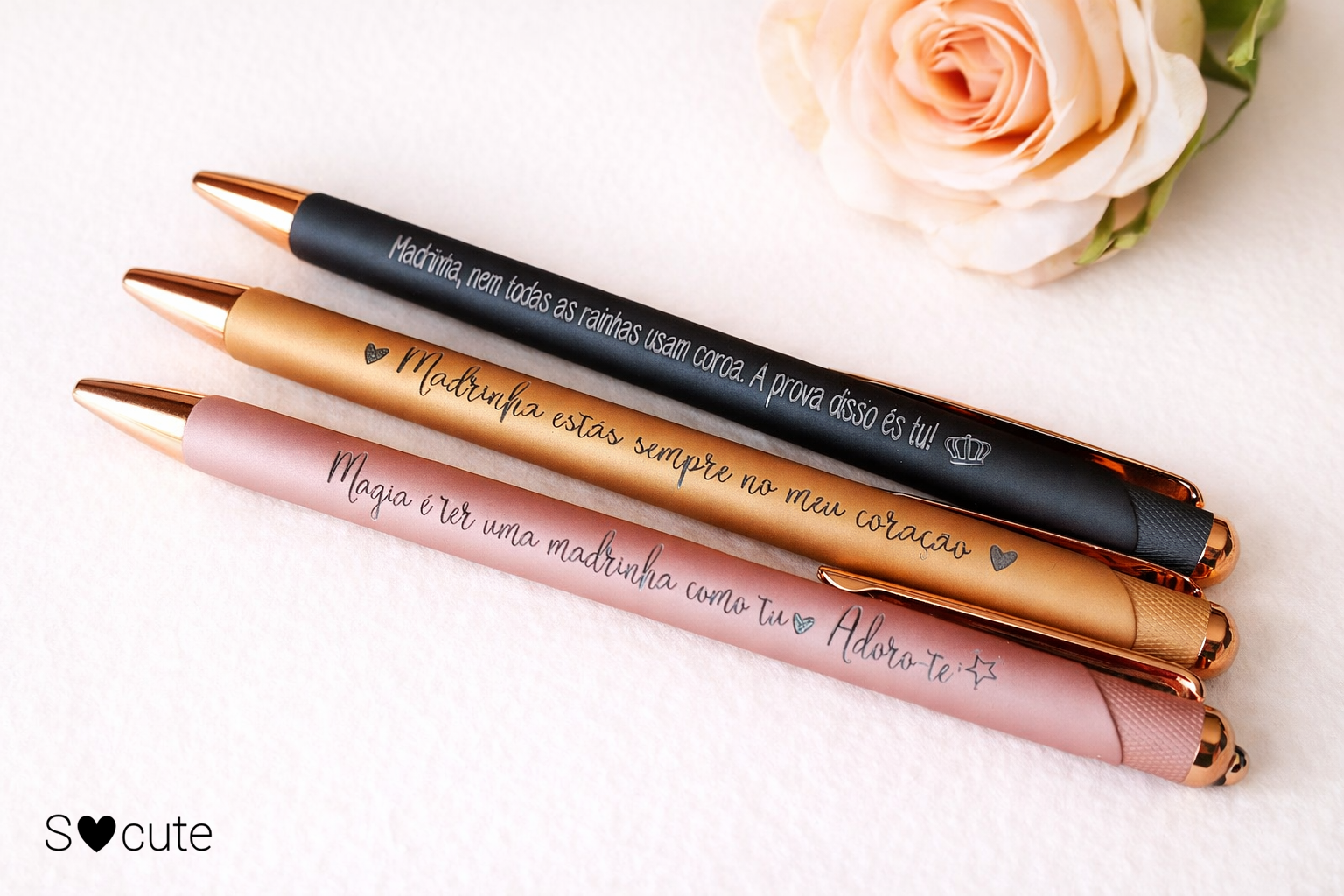 Com um design elegante e delicado, cada caneta pode ser personalizada com uma frase única — transformando um objeto do dia a dia numa recordação eterna.