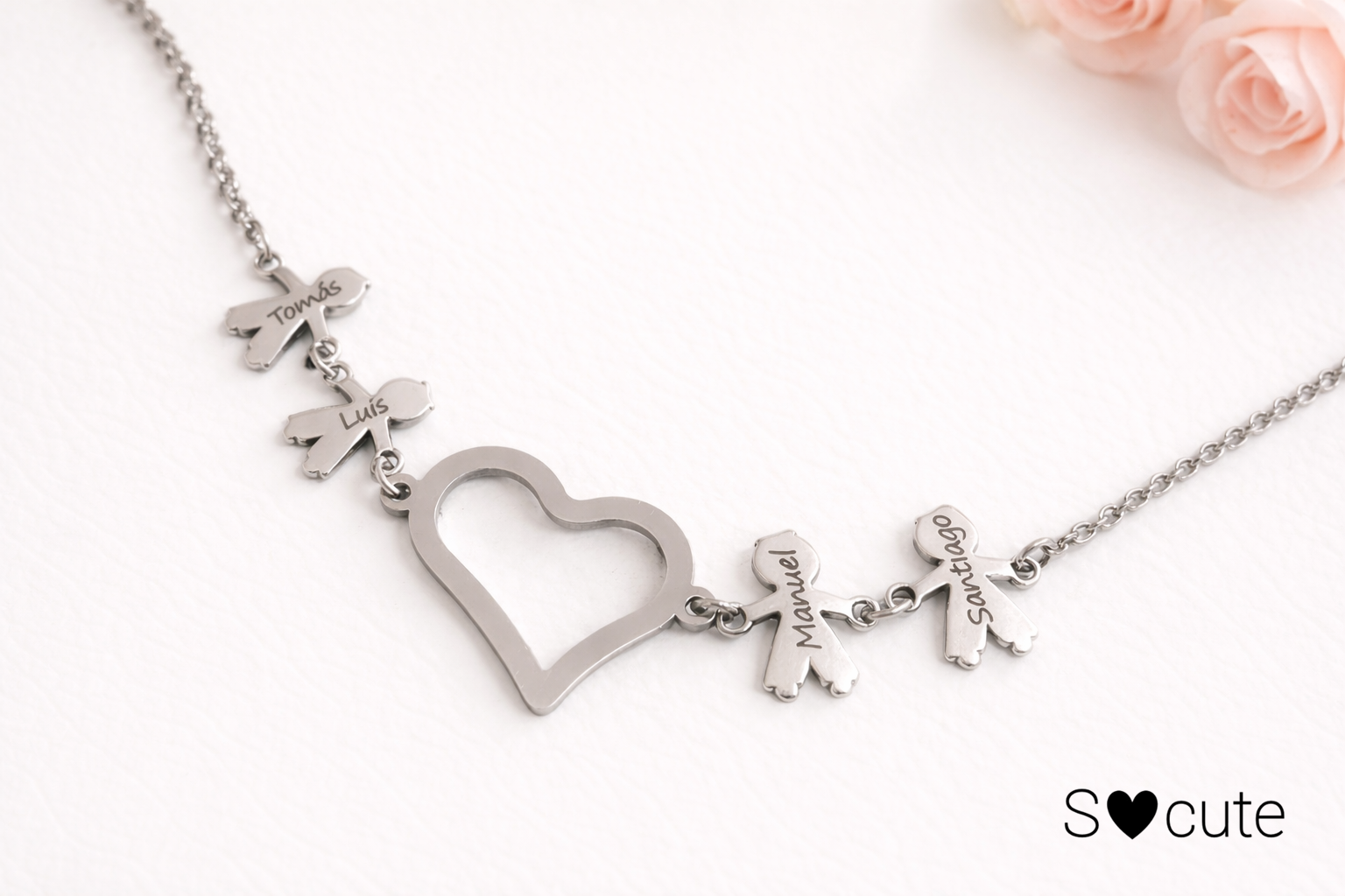 Colar Família Personalizado com Coração – Aço Inoxidável
