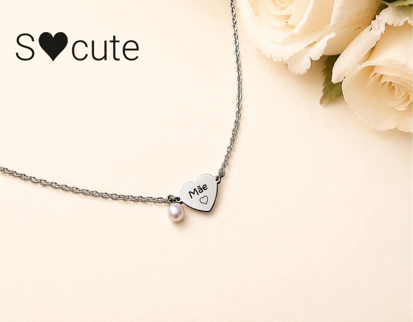 Colar Coração Personalizado “Mãe” ou “Avó” com Pérola – Aço Inoxidável