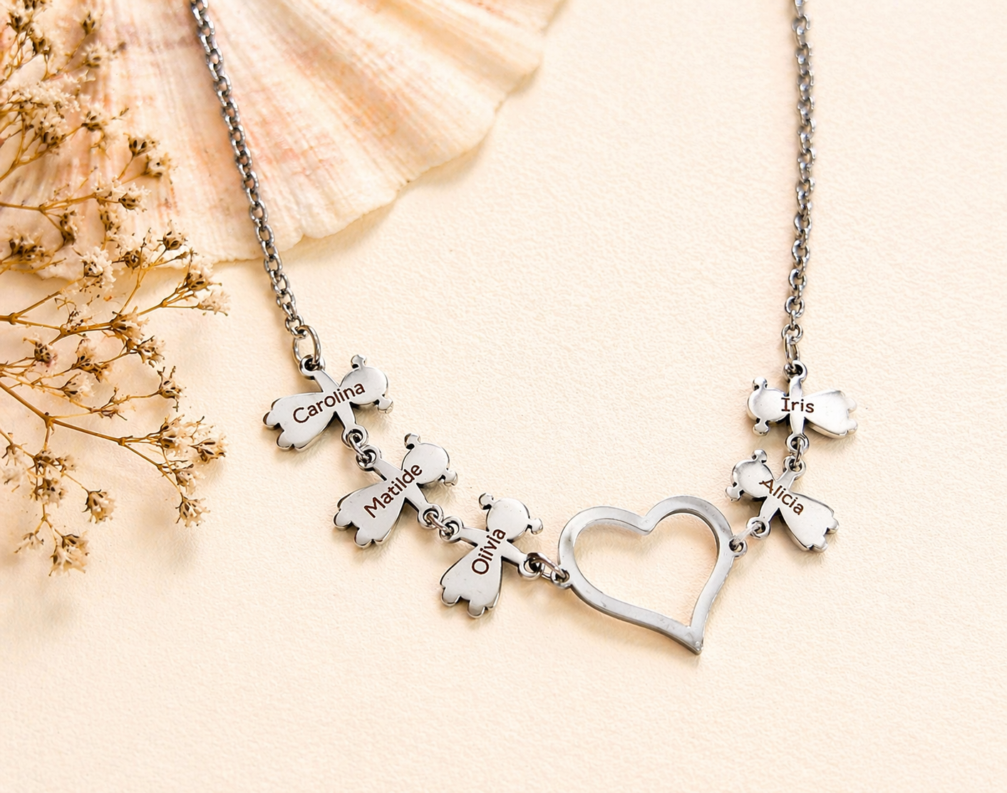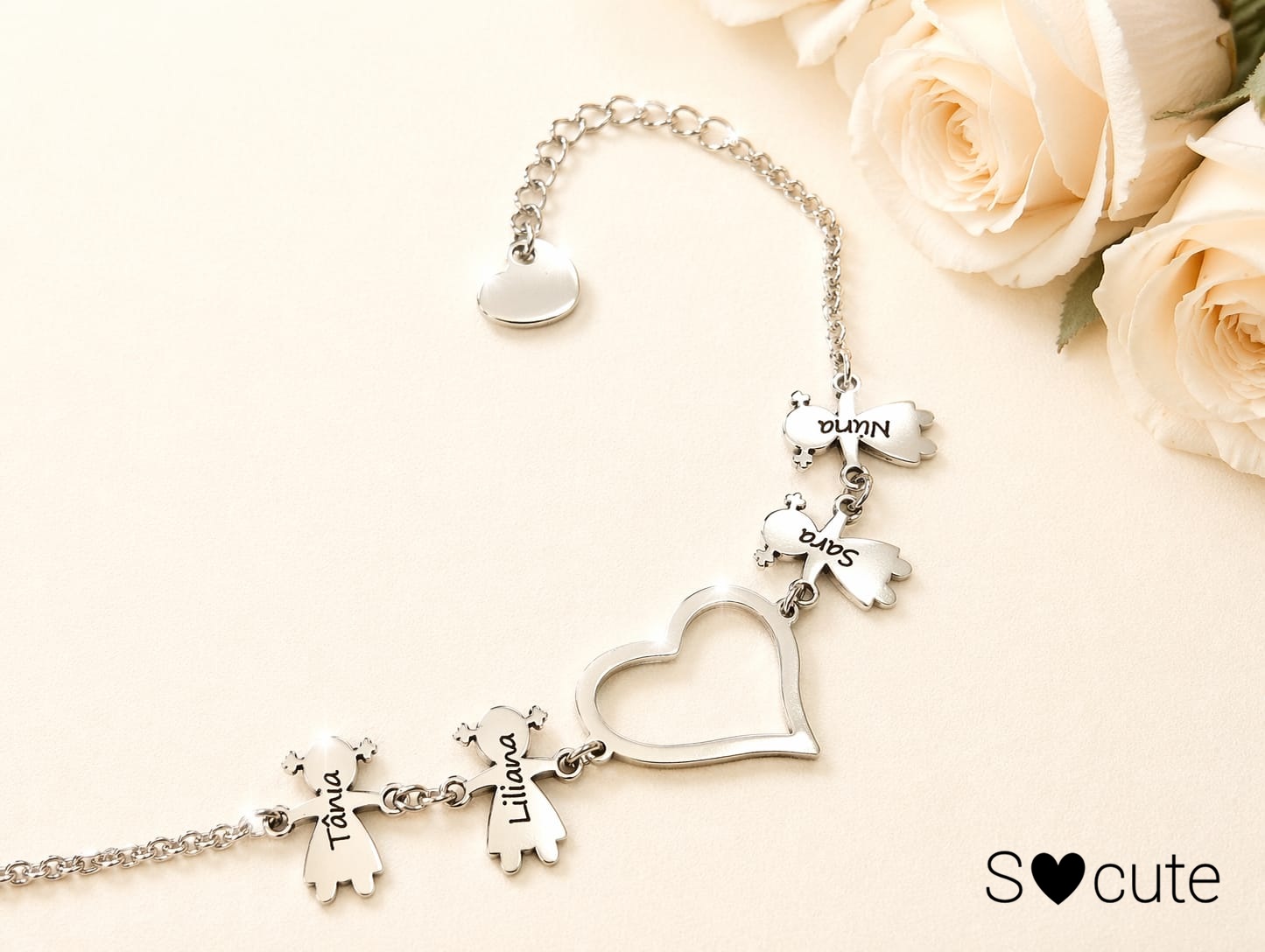 Joia Família Personalizada (Colar ou Pulseira em Aço Inoxidável) Coração
