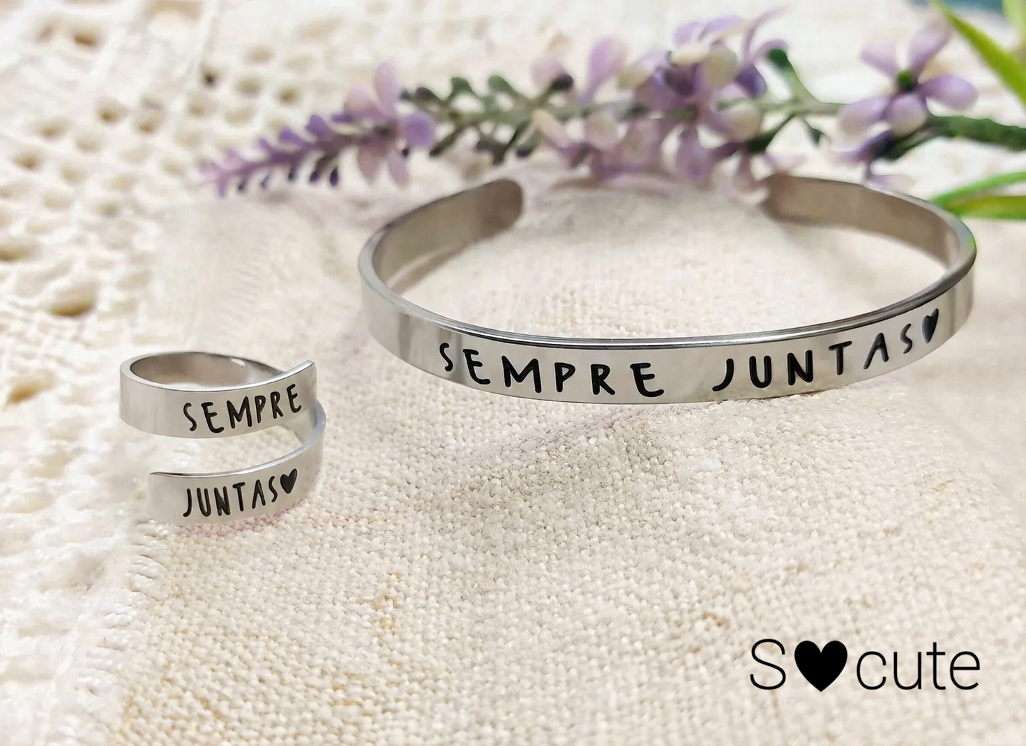 Conjunto Sempre Juntas – Pulseira e Anel Personalizados em Aço Inoxidável