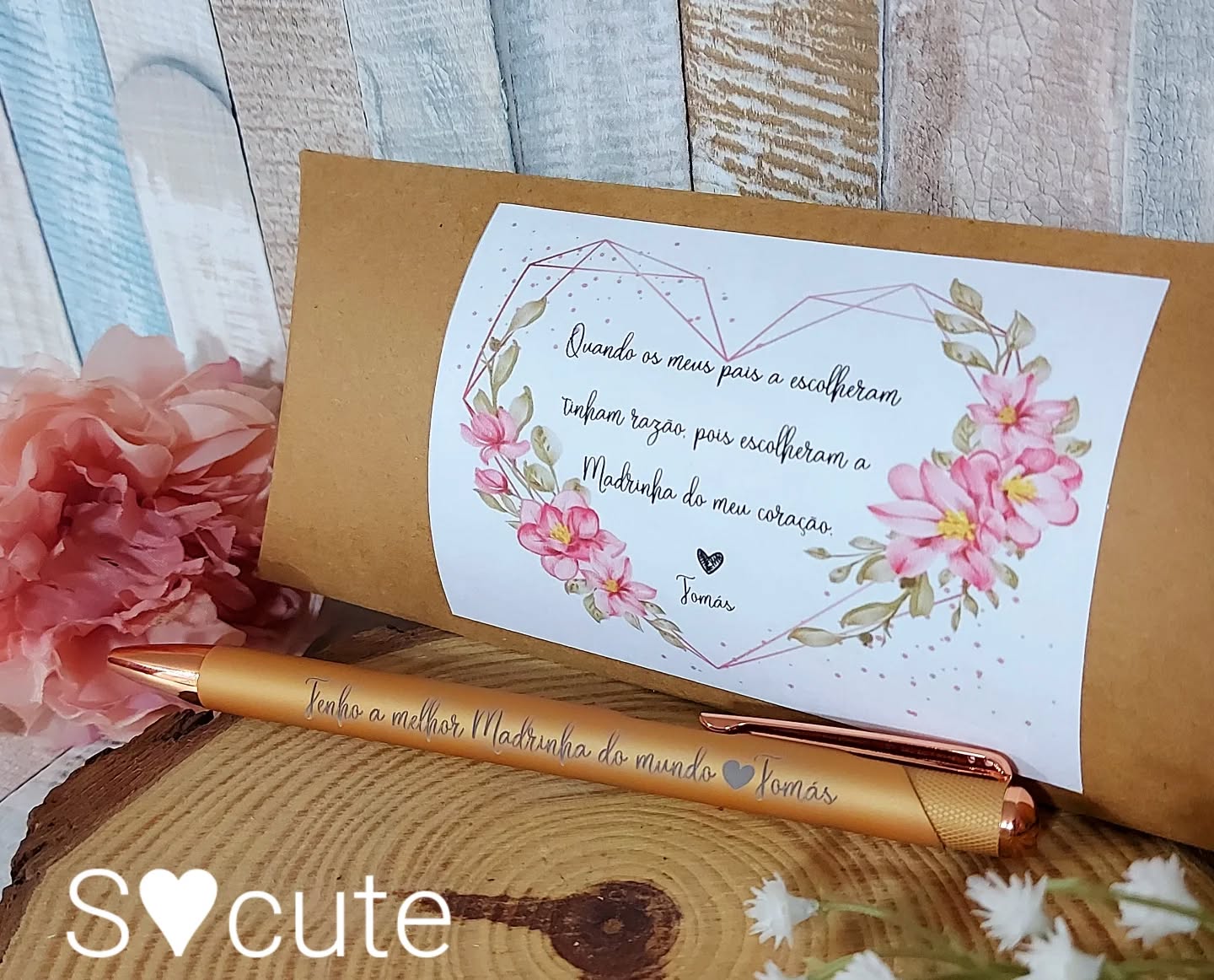 Conjunto caneta e caixinha - Madrinha 9,50 € Desconto de %. Partilhar Compra este produto e ganha 28 Pontos! Saber mais Cor da caneta Rosa Dourada Prateada Antracite Personalização pretendida Comprar Contactar Conjunto de caneta e caixinha para as Madrinhas (ou outras pessoas especiais). Personalize, indique a mensagem a colocar na caneta e na caixinha. Canetas com detalhes acobreados disponíveis nas cores: rosa, antracite, prateado e dourado - gravadas a laser. Caixinhas de cartão kraft personalizadas Tags MadrinhaPáscoaDia de RamosCaneta madrinha