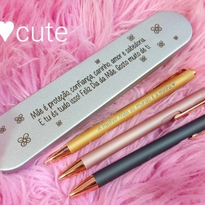 Conjunto caneta e caixinha personalizados 13,50 € Desconto de %. Partilhar Compra este produto e ganha 40 Pontos! Saber mais Caneta Antracite Rosa Dourado Prateado Personalização pretendida Comprar Contactar Conjunto de caixinha e caneta com gravação a laser. Personalize, indique a mensagem a colocar na caixinha e na caneta. Canetas com detalhes acobreados disponíveis nas cores: rosa, antracite, prateado e dourado. Tags Caneta e caixinhaCaneta gravada