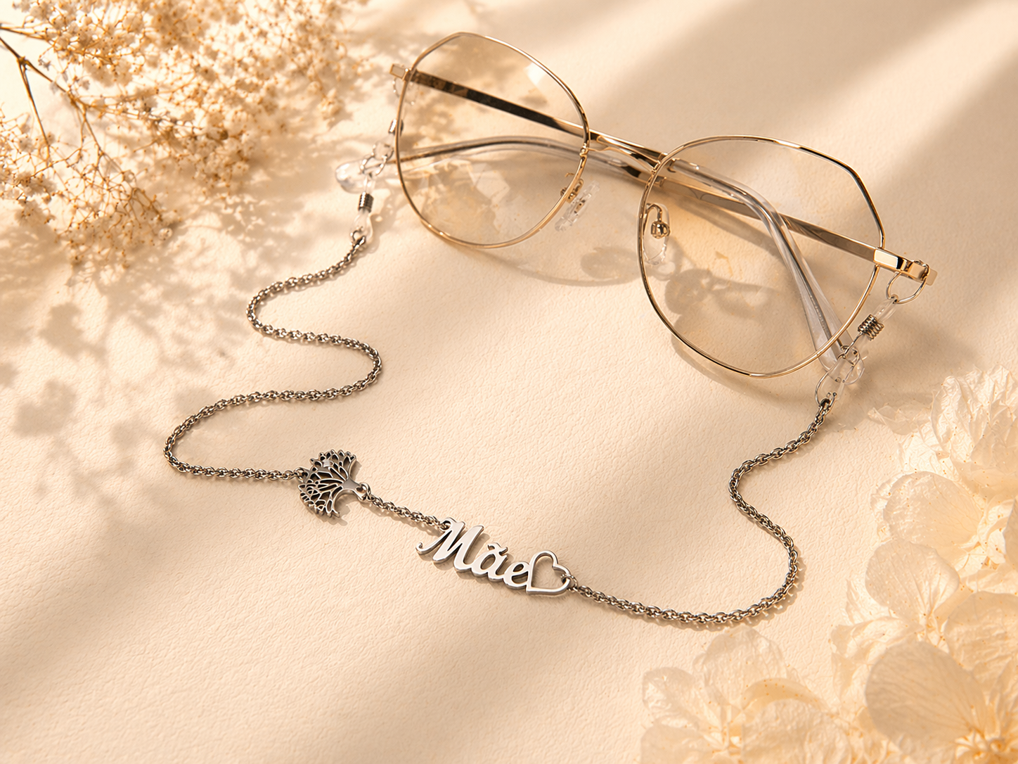Corrente para Óculos em Aço Inoxidável “Mãe” – Elegância com Significado