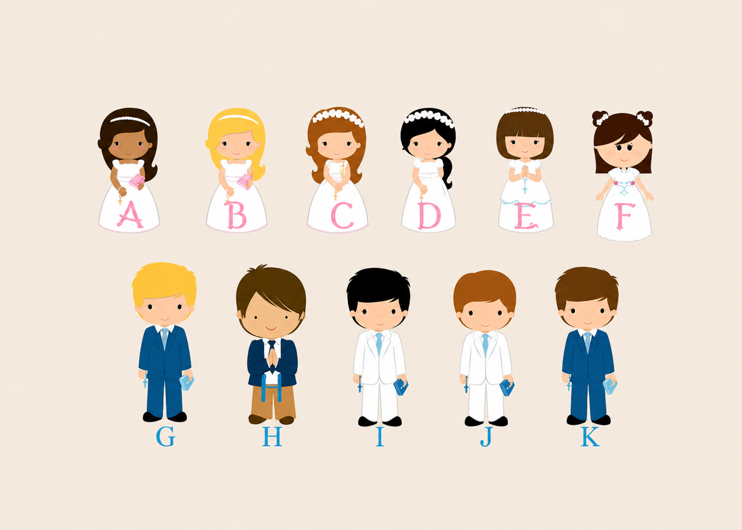 Com várias opções de menino e menina, adapta-se a diferentes ocasiões como batismo, primeira comunhão ou crisma.