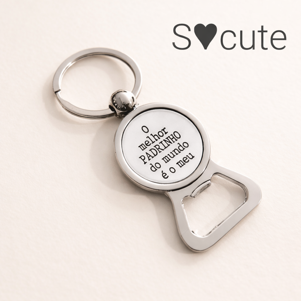 • Porta-Chaves Abre-Caricas Personalizado – Padrinho