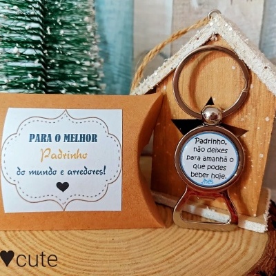 Porta-chaves /abre caricas Padrinho 9,00 € Desconto de %. Partilhar Compra este produto e ganha 27 Pontos! Saber mais Comprar Contactar Porta-chaves abre caricas para o Padrinho. "Não deixes para amanhã o que podes beber hoje". Caixinha personalizada incluída. Metal com resina. Indique o nome a colocar no final do seu pedido. Tags Padrinho