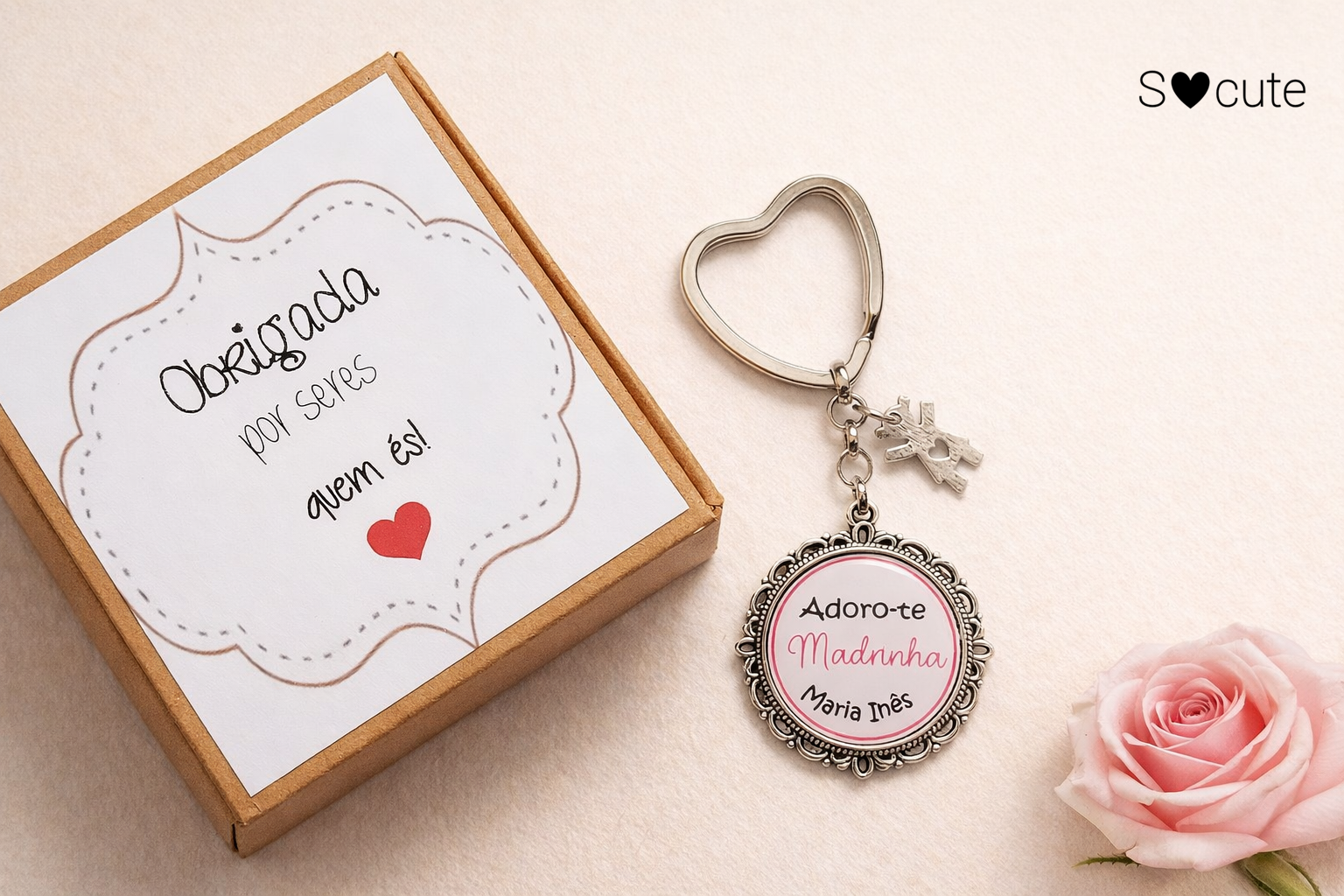 Este porta-chaves personalizado foi criado para celebrar esse amor especial entre afilhado(a) e madrinha — com um toque delicado, elegante e cheio de significado.