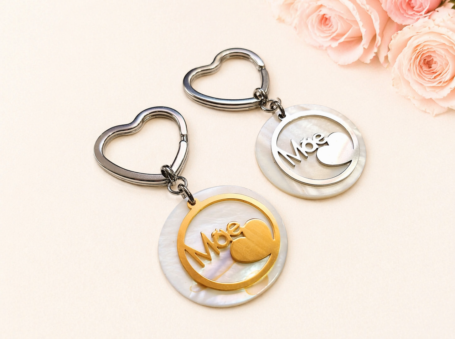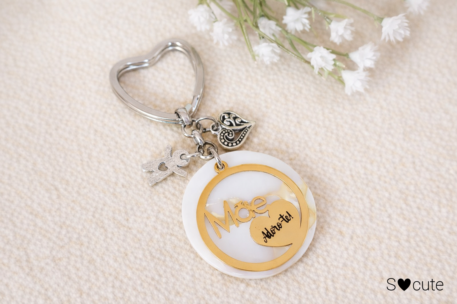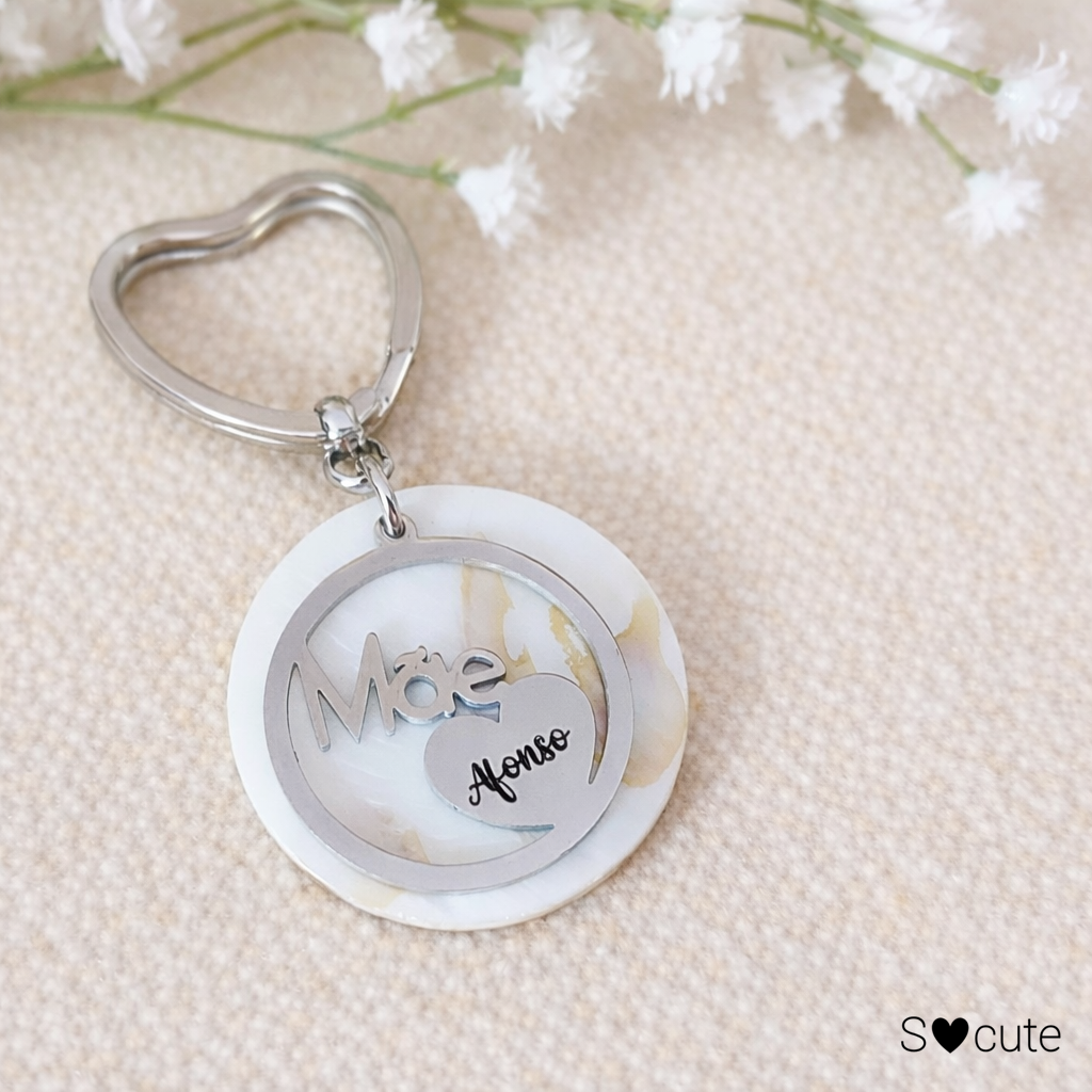 Porta-chaves Mãe Personalizado em Aço com Base em Madrepérola