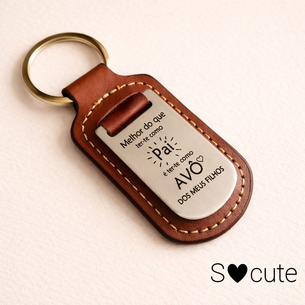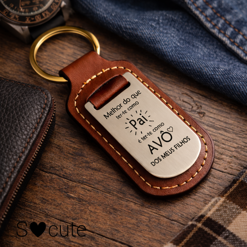 Surpreenda o melhor Pai e o melhor Avô com um porta-chaves elegante, resistente e cheio de emoção.