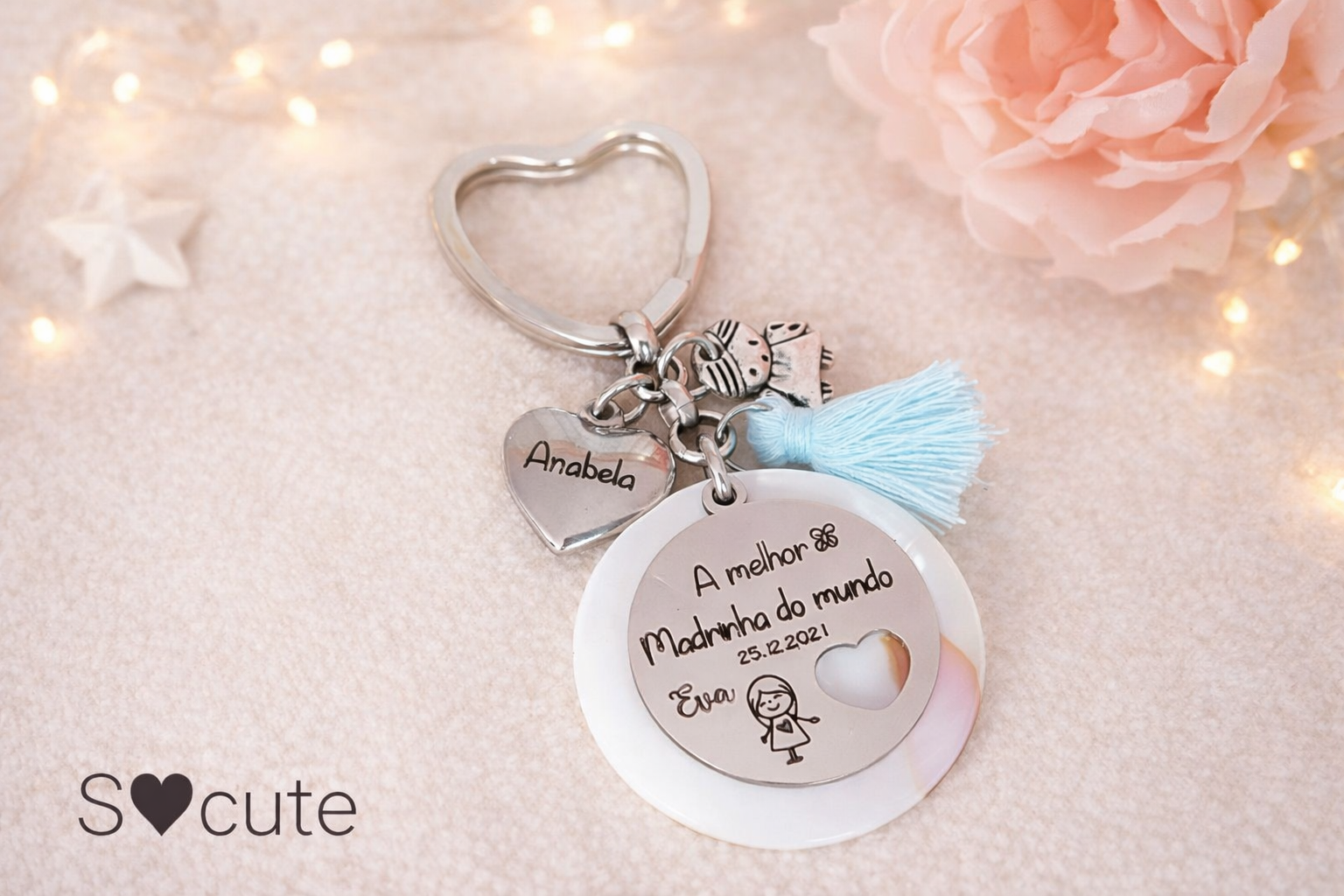 Um pequeno gesto que a madrinha poderá levar sempre consigo — nas chaves de casa, do carro ou da mala — lembrando todos os dias o carinho de quem a escolheu para este papel tão importante.