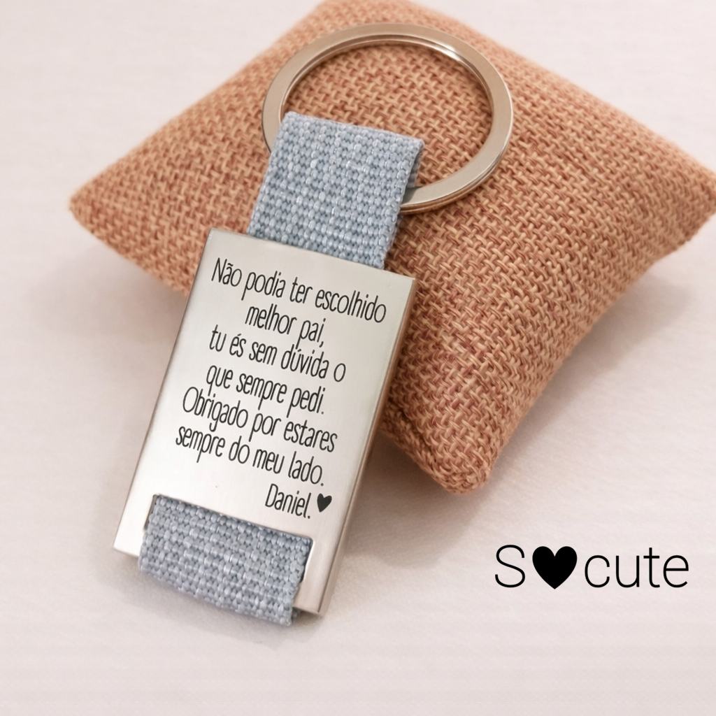Este porta-chaves gravado a laser é uma homenagem sincera, cheia de gratidão e amor.