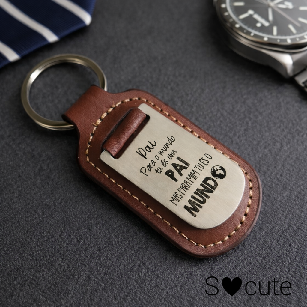 Surpreenda o melhor Pai e o melhor Avô com um porta-chaves elegante, resistente e cheio de emoção.