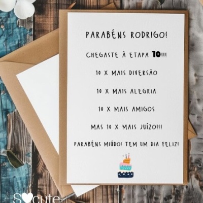 Postal de aniversário - Chegaste à etapa... 3,95 € Desconto de %. Partilhar Compra este produto e ganha 11 Pontos! Saber mais Personalização pretendida Comprar Contactar Postal de aniversário personalizado - pode pedir para alterar a mensagem * Impresso em cartolina branca 250gr* Envelope kraft incluído* Atrás pode escrever uma dedicatória/frase/data/ ou assinar apenas - Adicione um postal cheio de humor ao seu pedido e torne esse dia especial, único e divertido! Tags Postal aniversárioPostal com humorPostal divertido