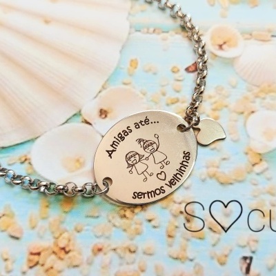 Pulseira "Amigas até sermos velhinhas" 14,00 € Desconto de %. Partilhar Compra este produto e ganha 42 Pontos! Saber mais Comprar Contactar Pulseira em aço "Amigas até sermos velhinhas". Pulseira em aço inoxidável com extensor.