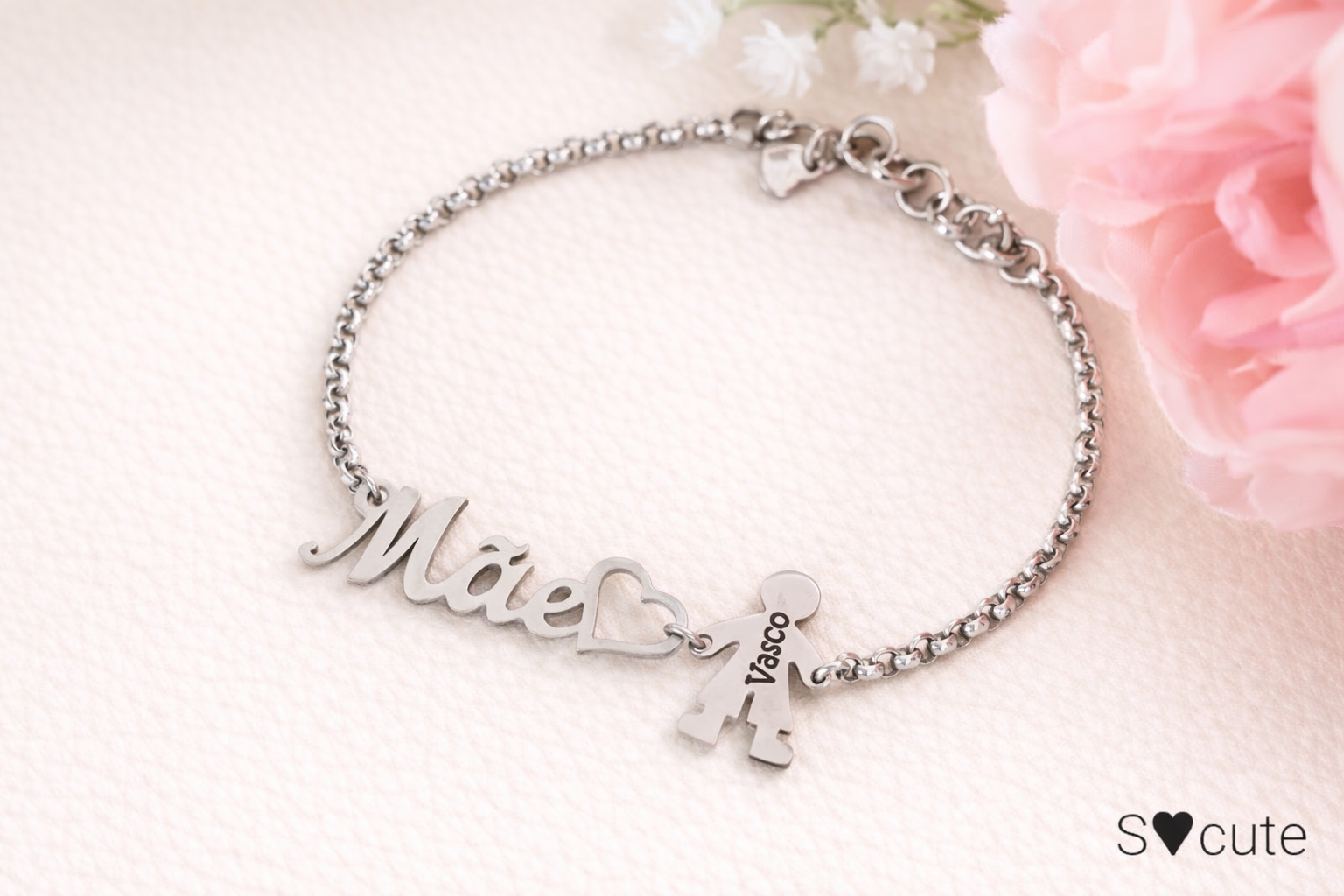 Pulseira Família Personalizada “Mãe” com Filhos – Nome Gravado | Aço Inoxidável