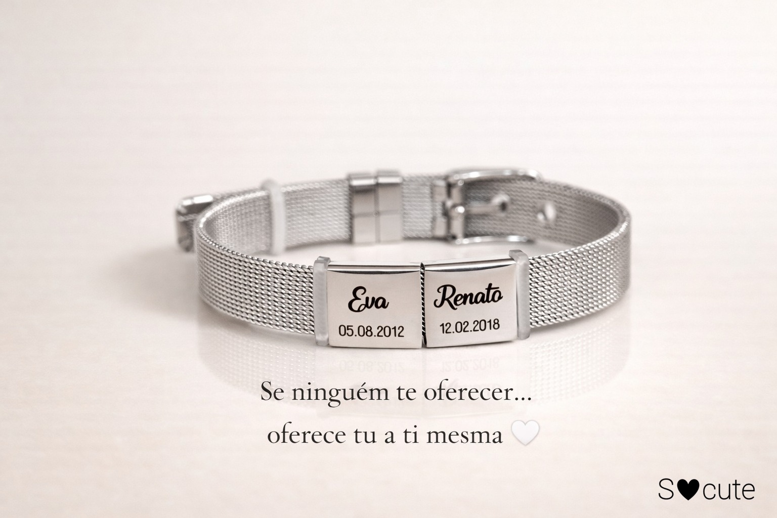 Pulseira Personalizada com Nomes – Aço Inoxidável | Presente para Mãe