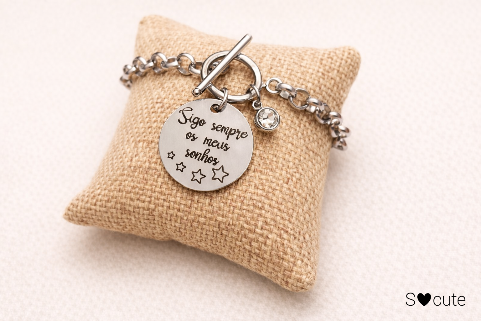 Esta pulseira é uma peça delicada e cheia de significado, criada para recordar todos os dias que os sonhos são o que nos guia e nos faz avançar.