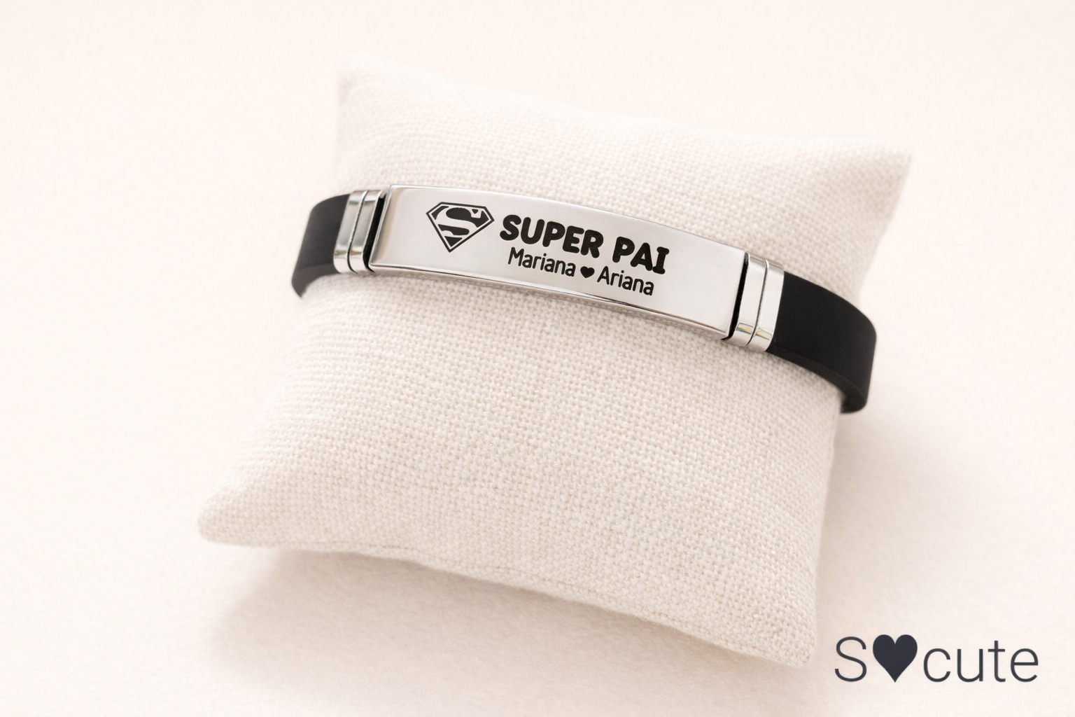 Pulseira Super Pai – Personalizada em Aço Inoxidável