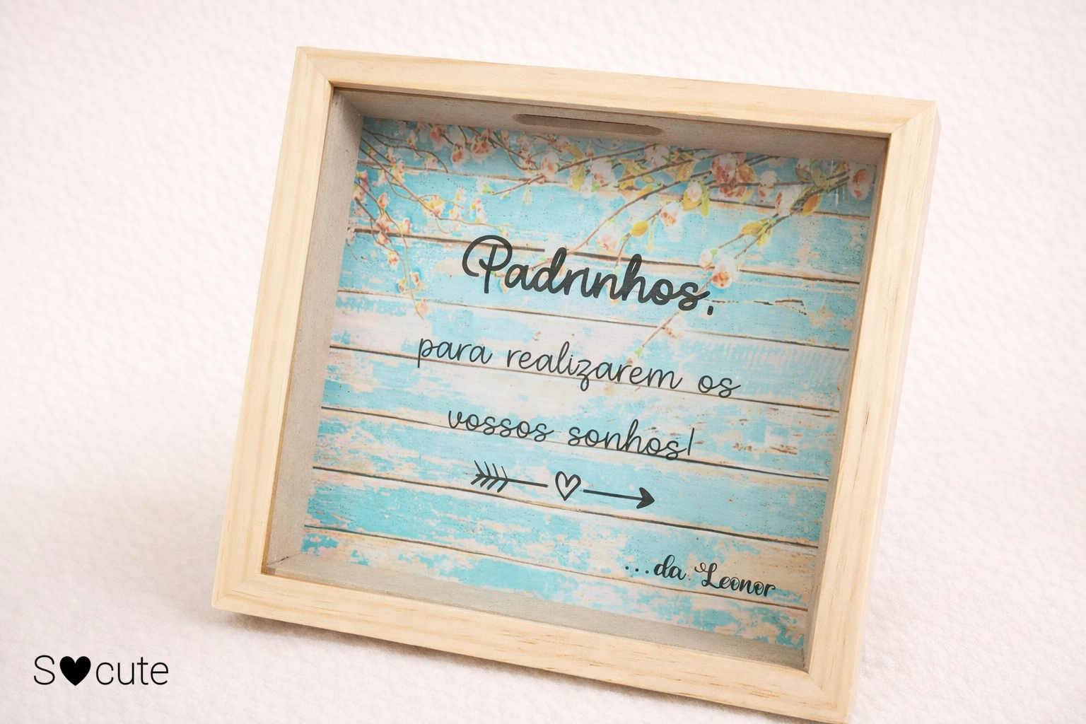 Este quadro mealheiro personalizado é a forma perfeita de um afilhado surpreender os seus padrinhos, com um presente cheio de significado, carinho e emoção.