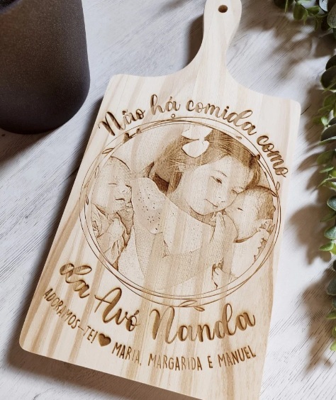 Tábua de madeira personalizada 16,50 € Desconto de %. Partilhar Compra este produto e ganha 49 Pontos! Saber mais Com gravação de foto Sim Não Personalização pretendida Comprar Contactar Tábua em madeira personalizada Tamanho: cerca de 37 cms. Pode ser personalizada com foto e texto, só texto (e os nomes que quiser, claro!) Descreva como quer personalizar este artigo (nomes, textos, família, etc) NOTAS: 1 - Se quiser o texto igual à imagem, escreva apenas "igual"; 2 - Se for com foto, selecione essa opção e posteriormente será pedida por nós para a enviar por e-mail. (Encomendas para o Natal até 30 Novembro) Tags Tábua personalizadaTábua de cozinhaNatal