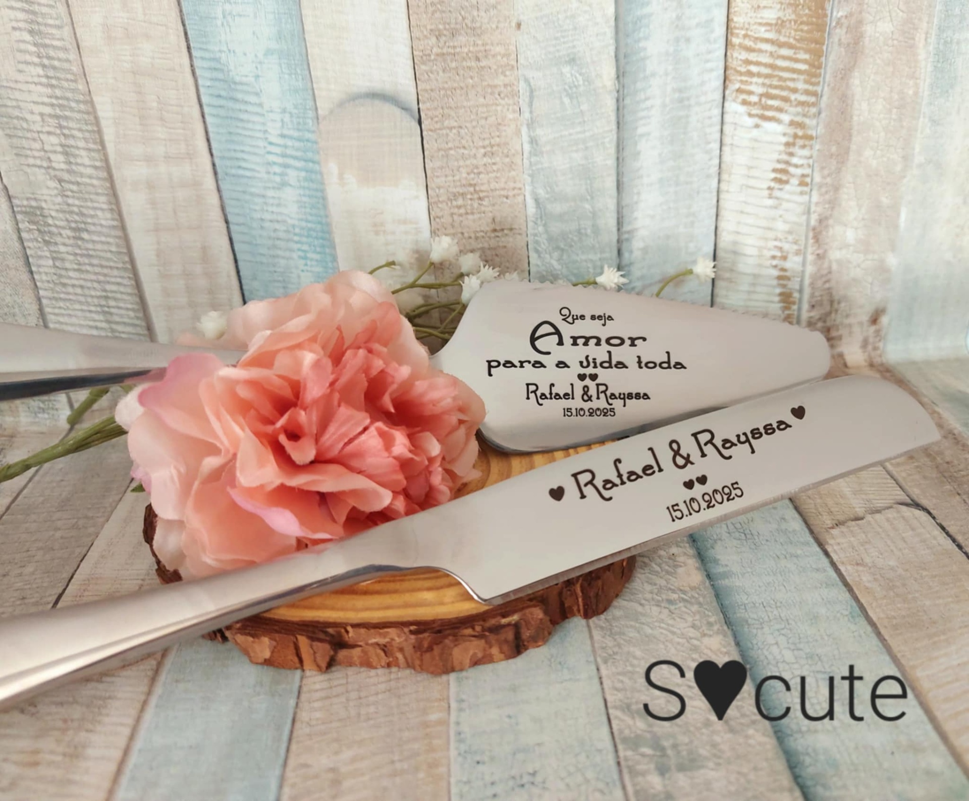 Talheres para Bolo de Casamento 25,00 € Desconto de %. Partilhar Compra este produto e ganha 75 Pontos! Saber mais Personalização pretendida Comprar Contactar Conjunto Talheres para Bolo de Casamento "Que seja Amor para a vida toda". Gravados a laser, em aço inoxidável. Seguem em caixinha de cartão. Pode personalizar. Tags Talheres bolo casamentoTalheresCasamento
