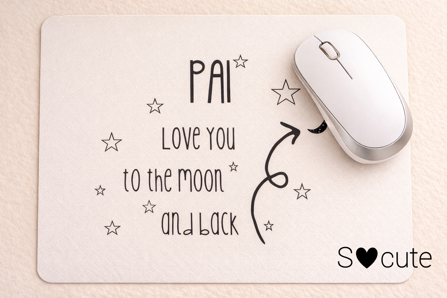 Este tapete de rato personalizado é muito mais do que um acessório de secretária — é uma declaração de amor permanente. Um lembrete diário de que é amado… daqui até à lua e mais além.